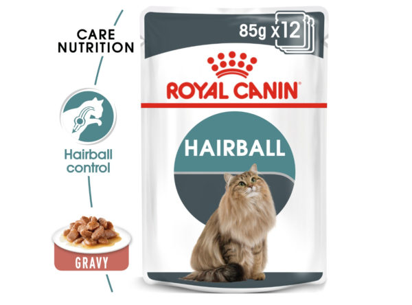 Hairballs occur when hair stays in your cat’s stomach without passing through the digestive tract. The majority of the hair travels through the digestive tract with ease, but large amounts of hair can result in hairballs. That’s why ROYAL CANIN® Hairball Care in Gravy is formulated to help your cat eliminate ingested hair by stimulating the intestinal transit passage – removing any excess hair that would usually remain in the stomach. ROYAL CANIN® Hairball Care in Gravy also helps to maintain your cat’s ideal weight – with a low fat content of just 2.7%. Essential fatty acids are included as well, to help provide valuable energy. High digestibility is supported through the inclusion of dietary fibre in ROYAL CANIN® Hairball Care in Gravy, this contributes to a balanced gut flora and healthy intestinal tract activity. To cater to each cat’s preferences, ROYAL CANIN® Hairball Care is also available as dry food, with crunchy and tasty kibble. If you’re considering mixed feeding, simply follow our feeding guidelines to ensure your cat gets an accurate amount of both wet and dry food for optimal benefit.